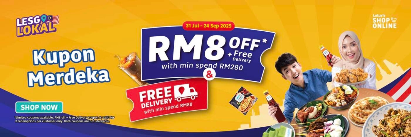 Get FREE SHIPPING + RM8 OFF with Min purchase of RM280 (MERDEKA)